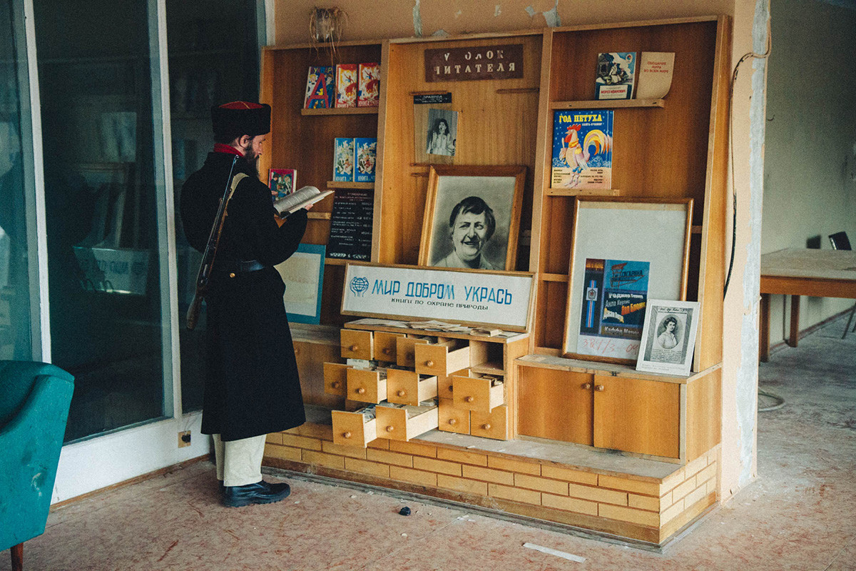Muchos edificios siguen en pie: hay una escuela y una sala de conciertos con muebles soviéticos, posters y libros todavía.